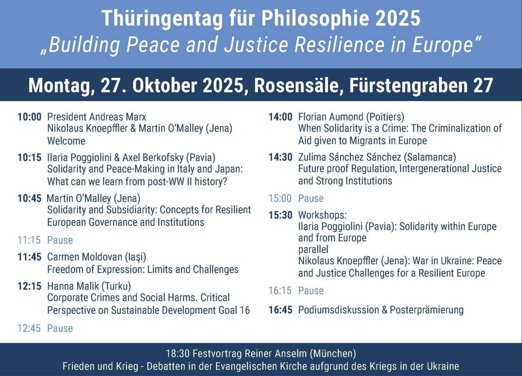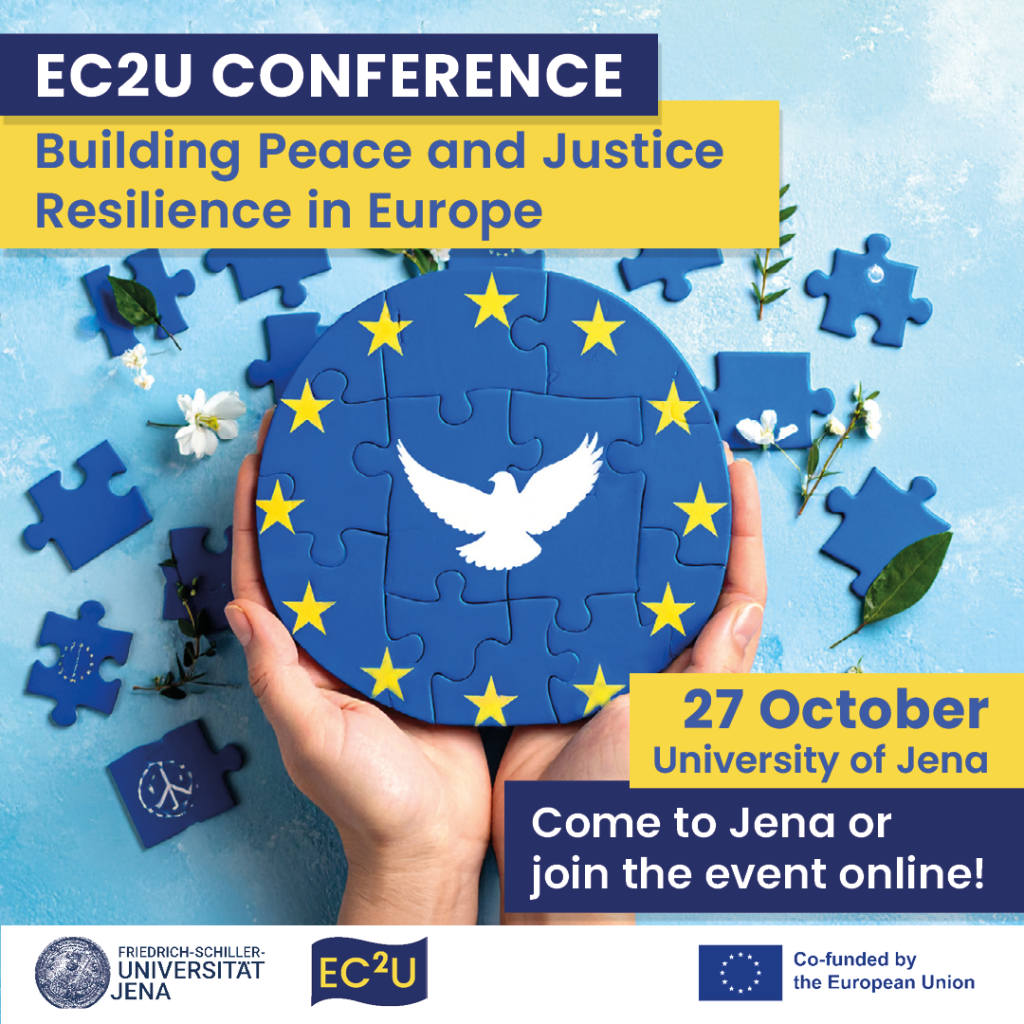 The EC2U Conference “Building Peace and Justice Resilience in Europe: interdisciplinary approaches supporting Peace, Justice and Strong Institutions” will take place on October, 27 as a hybrid event, hosted by the University of Jena and accessible online.
