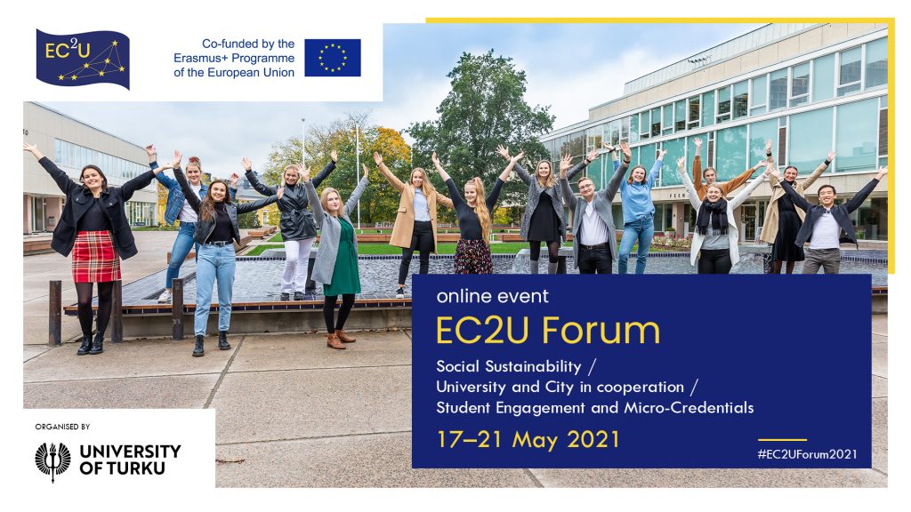 The 2nd Forum organised by the EC2U Alliance will take place virtually on 19–21 May. It will be hosted by the University of Turku, and will focus on topics including social sustainability, collaboration between universities and cities, and micro-credentials/recognition of students engagement.