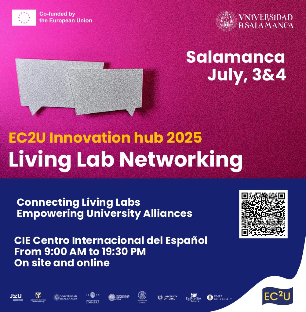 The EC2U Innovation Hub is hosting a two-day Living Lab Networking Hybrid Event on Wednesday 3rd and Thursday 4th of July in Salamanca, Spain.