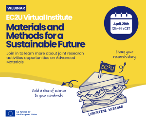 The newly created EC2U Virtual Institute for Materials and Methods for a Sustainable Future is launching its activities in its kick-off webinar that will take place on Tuesday, 29th of April from 12:00 to 14:00 CET.