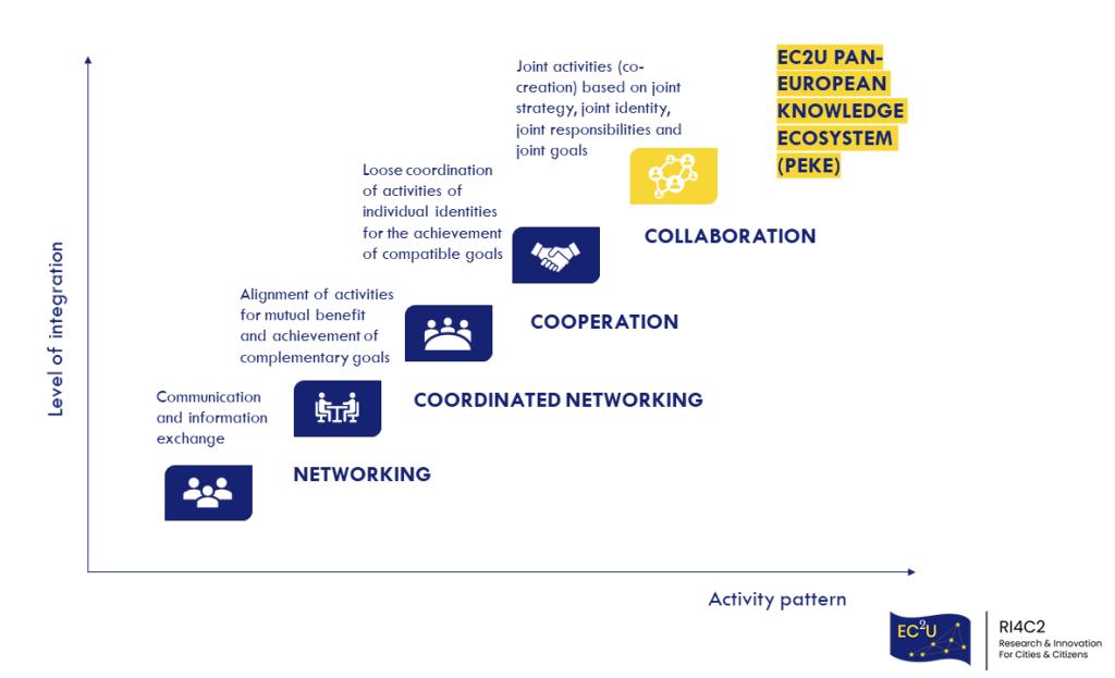The overall objective of the RI4C2 project (a 3-year project funded by the Horizon 2020 “Science with & for Society” – SwafS call for European Universities) is to extend the R&I activities of the EC2U Alliance and transform all aspects of its R&I missions. This will be achieved via the creation of a shared EC2U Pan-European Knowledge Ecosystem (PEKE).