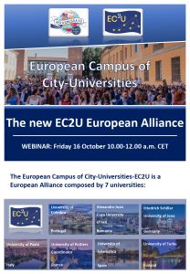 For the occasion of the Erasmus Days held on the 15th, 16th and 17th of October, the EC2U Alliance was presented during a live webinar organized by the University of Pavia on the 16th of October. Each Partner University presented itself and the Work Packages it is in charge of.