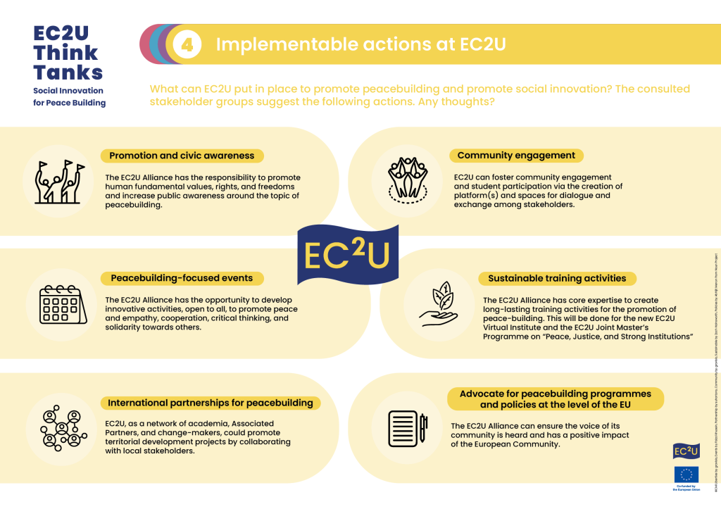 Key takeaways are grouped into different categories: common barriers & challenges, the role of education and science to harness peacebuilding and possible implementable actions at the level of the EC2U Alliance.