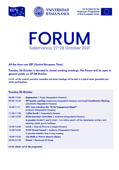 Every six months, the Alliance organises the EC2U Forum to gather students, staff, citizens, local and regional authorities to foster open dialogue on pressing issues in society and to share good practices. The Forum in Salamanca will be the first one to give the opportunity to the EC2U community to finally meet in person.