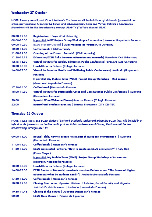 The event will start with closed working meetings, and will then be open to general public on 27-28 October. Find out the detailed programme of the event, for face-to-face and distance conferences, below.