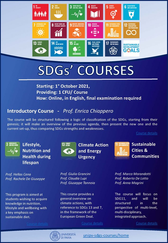 For each course, details are available at the link https://sites.google.com/unipv.it/unipv-sdgs-courses/home